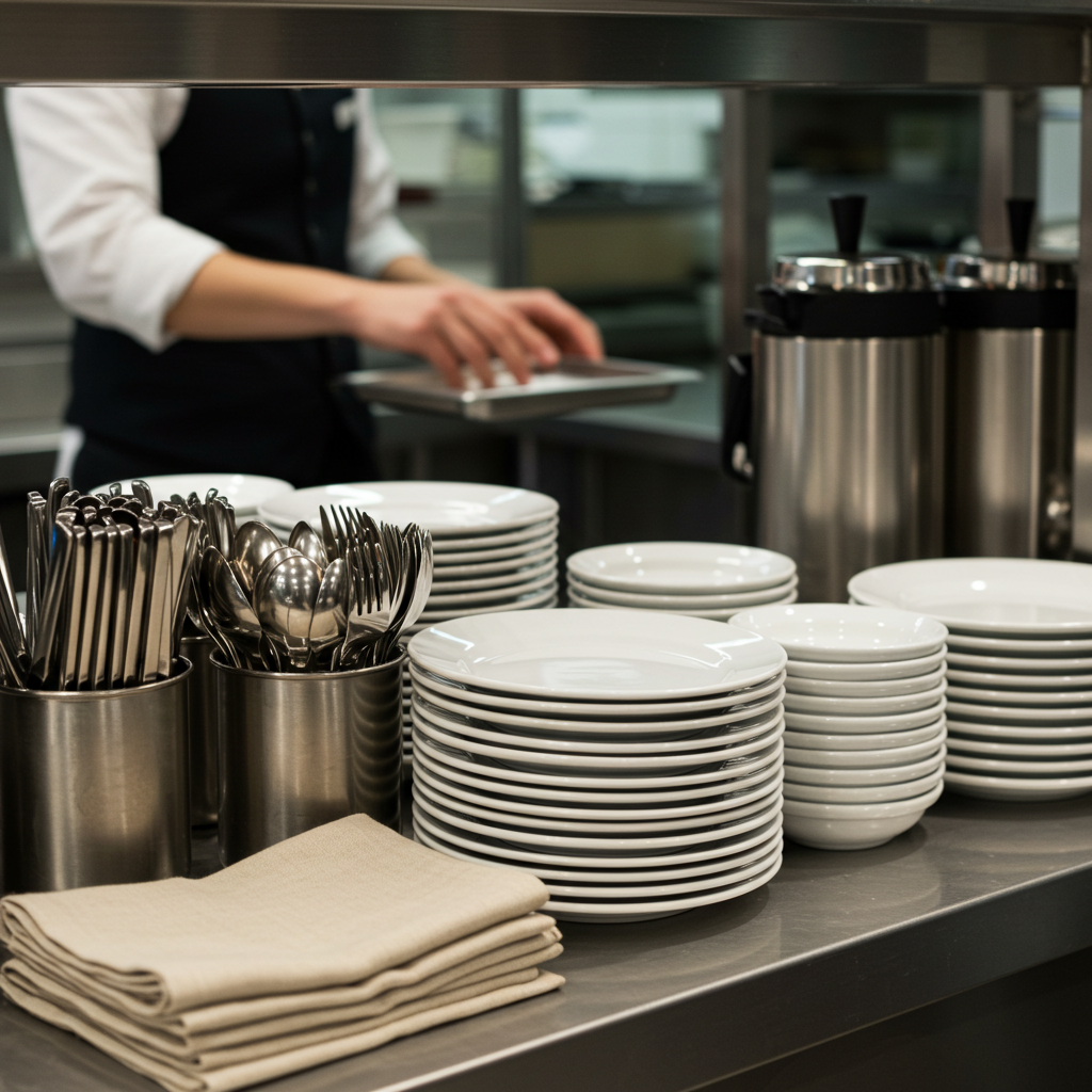Tableware: Elegant plates, glasses, cutlery, and napkins to enhance your dining experience.