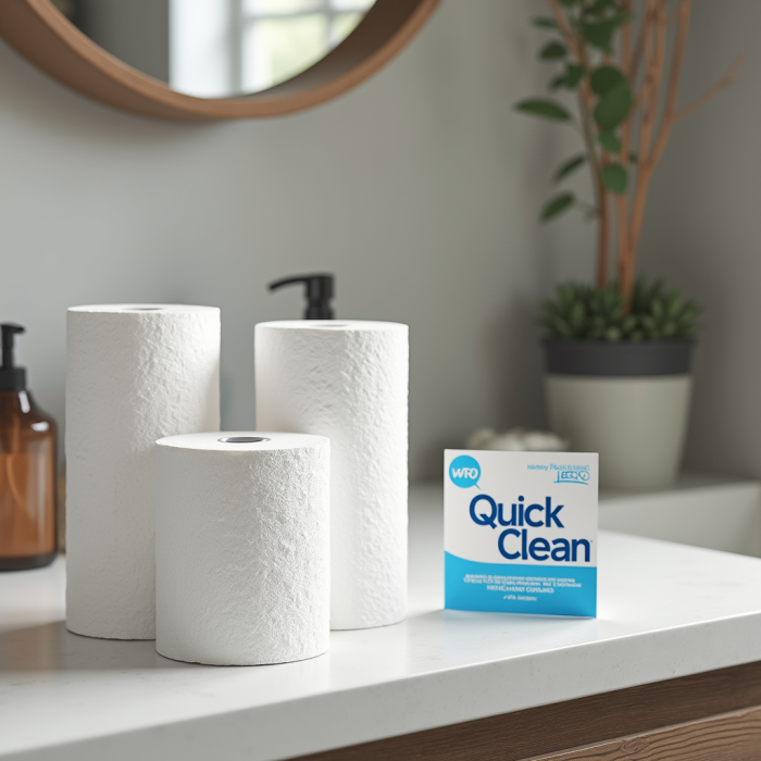 The QuickClean Pro hotel paper towel set is made from high-absorbency paper, offering a quick and convenient solution for spills and cleaning. Each roll is designed for durability and ease of use, making it perfect for hotel kitchens or bathrooms