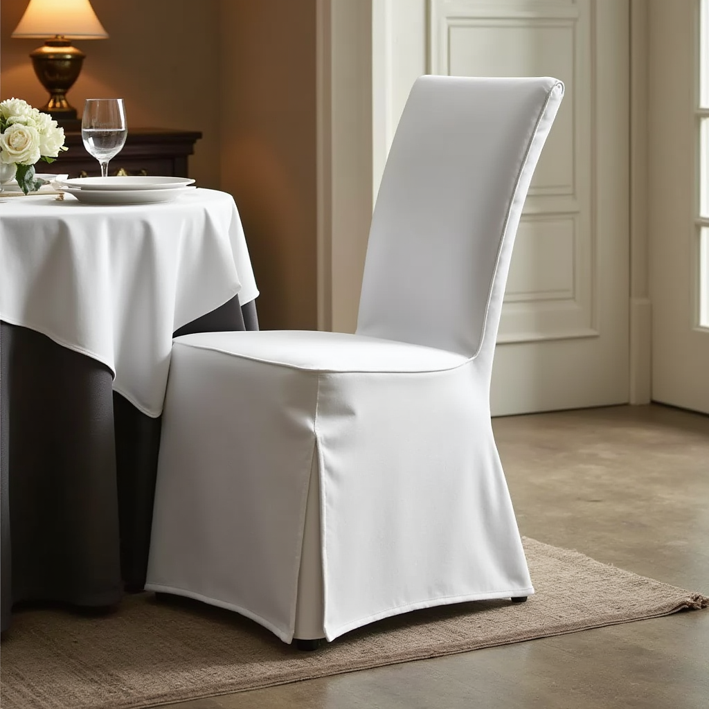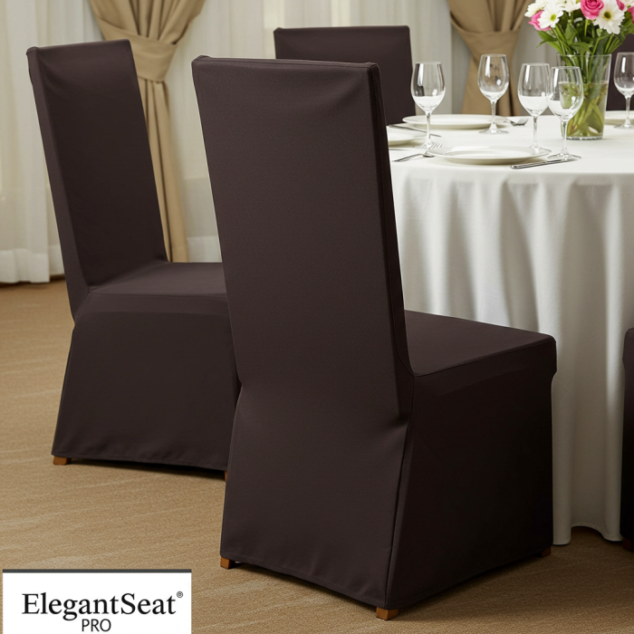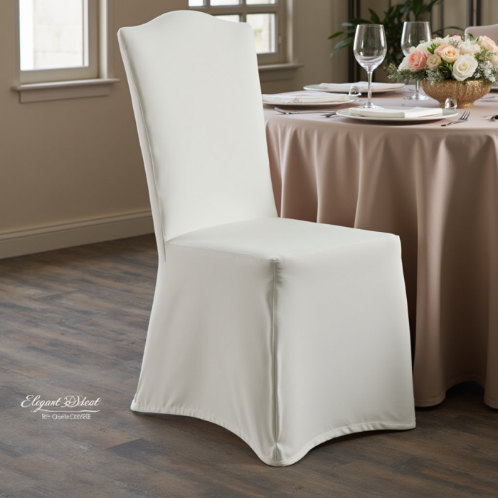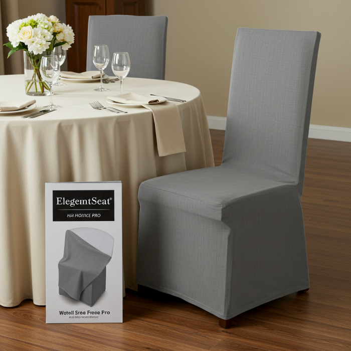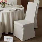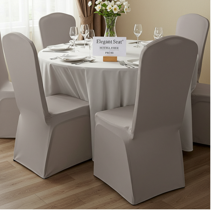 The ElegantSeat Pro hotel chair cover is made from high-quality polyester, offering a wrinkle-free and stain-resistant surface. Its neutral colors and elegant design make it perfect for hotel dining areas or event spaces, ensuring a clean and sophisticated look