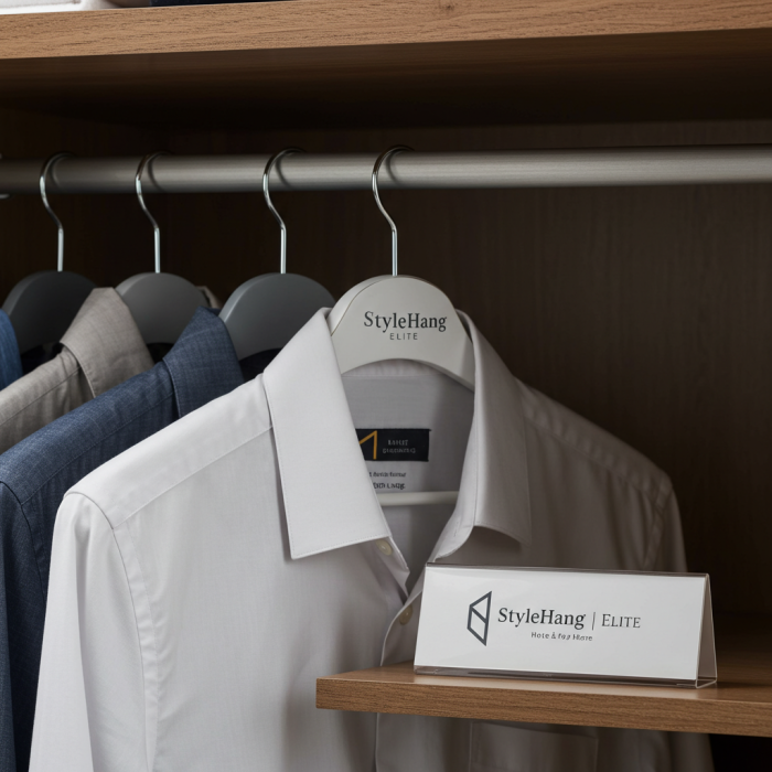 The StyleHang Elite hotel clothes hanger is made from durable wood, offering a sleek and elegant design. Its sturdy construction ensures long-lasting use, while the ergonomic shape prevents clothes from slipping. Perfect for hotel closets or guest rooms