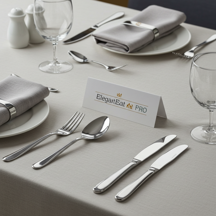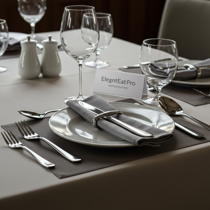The ElegantEat Pro hotel cutlery set is made from high-quality stainless steel, offering a polished finish and a comfortable grip. Each piece is elegantly designed to enhance your hotel dining experience, ensuring a luxurious touch for every meal