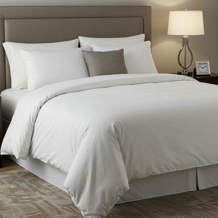 The CloudComfort Elite hotel duvet cover is made from 100% high-quality cotton, offering a soft and luxurious feel. Its durable construction ensures long-lasting use, while the neutral colors complement any room decor. Perfect for creating a cozy and inviting atmosphere for your guests.