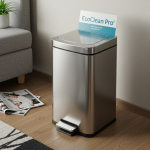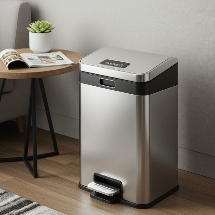The EcoClean Pro hotel waste bin is made from durable stainless steel, offering a sleek and modern design. Its compact size and easy-to-clean surface make it perfect for hotel rooms, bathrooms, or offices. The pedal-operated lid ensures hands-free use, maintaining hygiene and convenience.