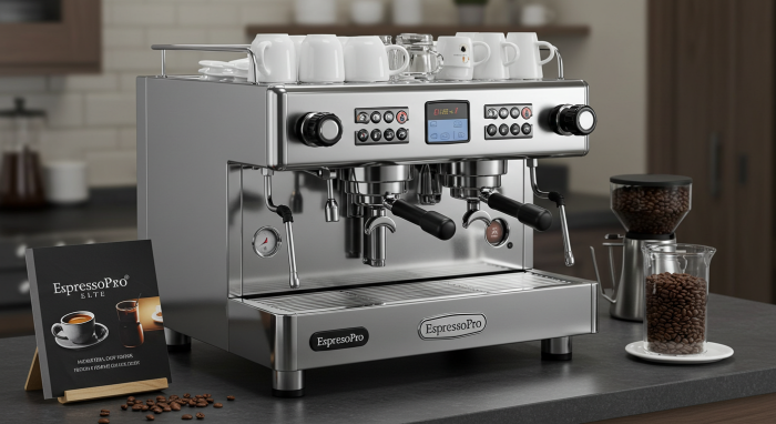 The EspressoPro Elite is a high-performance industrial espresso machine designed for hotel kitchens and cafes. It features multiple group heads, steam wands, and precise temperature controls, ensuring barista-quality coffee every time. The stainless steel construction ensures durability, while the intuitive interface makes it easy to operate. Perfect for high-volume environments, this machine delivers consistent results.